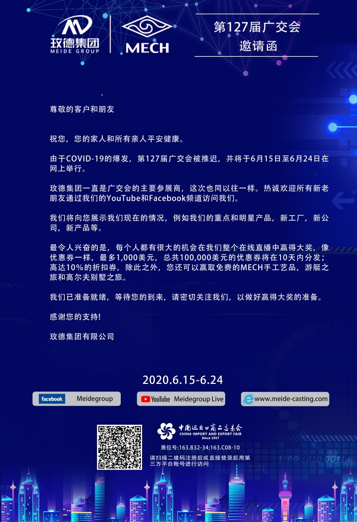 欢迎各位新老客户参加并观看玫德集团第127届线上广交会直播
