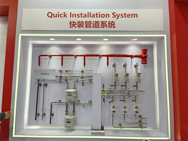 玫德集团的快装管道系统包含消防领域、水务领域、暖通领域、燃气领域,快装管道系统着重把握“安全”“快速”“高质量”等几项标准,有效提升安装效率最高可达10倍以上,本次展会展出的快装系统为综合系统,包含以下几种产品类别。