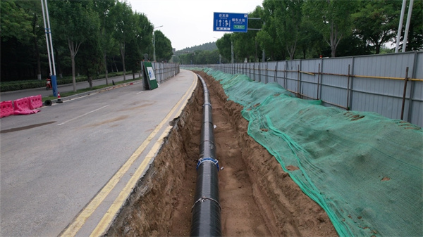 总长度14.8Km,主管线采用DN800、DN600的TPEP螺旋沟槽钢管,为国内首个埋地沟槽连接案例。