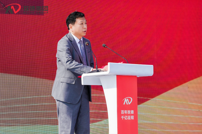 玫德集团董事局主席孔令磊在致辞中,向莅临现场的各位领导与嘉宾表达了诚挚感谢。他深情回顾了玫德集团 60 余年的发展征程 —— 从一家本土企业,逐步成长为业务遍及全球 140 多个国家和地区的国际化集团。